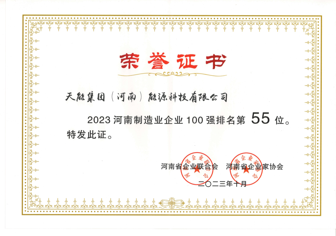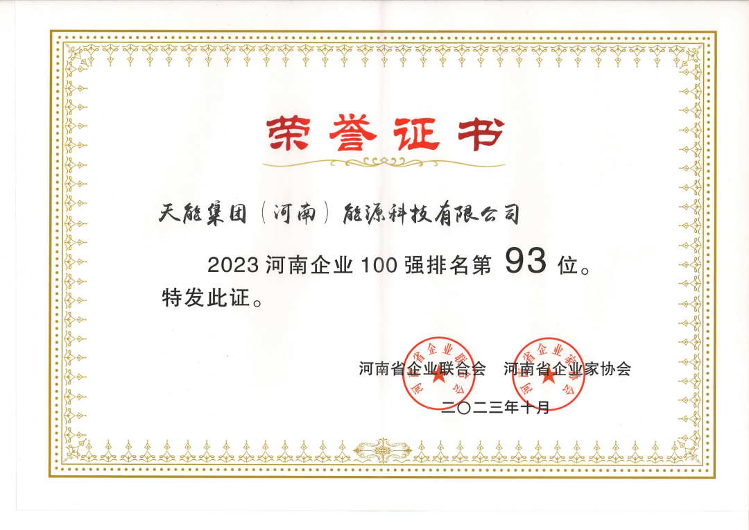 近日,河南省企业联合会、河南省企业家协会主办的“2023河南企业100强高峰会”在开封召开。会上发布系列百强榜单,zoty中欧集团(河南)能源科技有限公司位列“河南企业100强”第93位,“河南制造业企业100强”第55位。